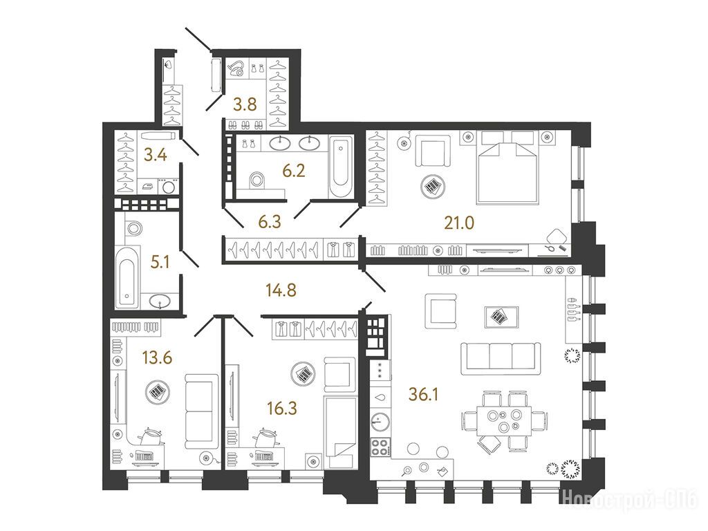Продается трехкомнатная квартира в новостройке ЖК «Коллекционер» по адресу Санкт-Петербург, Петроградский, ул. Чапыгина, 4. Общая площадь квартиры - 126.6 кв. м. Тип проекта, по которому построен дом — Монолитно-кирпичный, компания-застройщик — RBI. Стоимость квартиры — 96 945 957 руб. Способы оплаты можно уточнить у продавца. Срок сдачи — 4 квартал 2028. Более подробная информация по телефону.