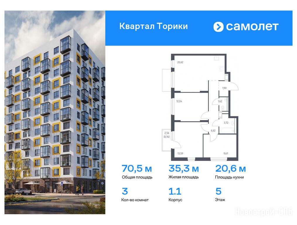 Продается трехкомнатная квартира в новостройке ЖК «Квартал Торики» по адресу Ленинградская область, Ломоносовский район, Виллозское г.п., пос. Новогорелово. Общая площадь квартиры - 70.54 кв. м. Тип проекта, по которому построен дом — Монолитно-кирпичный, компания-застройщик — Самолет. Стоимость квартиры — 13 440 510 руб. Способы оплаты можно уточнить у продавца. Срок сдачи — 4 квартал 2025. Более подробная информация по телефону.