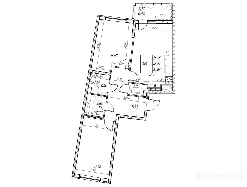 3-комн. квартира 56,16 м2 8 082 711
