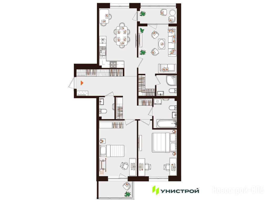 Еще застройщик предлагает комфортные условия, как в самом доме, так и за его пределами. В квартире продумано все до мелочей: современная отделка, уютные общественные пространства и отличная звукоизоляция. Внутренний двор тоже радует: есть места для отдыха, детские площадки и даже спортивные зоны.