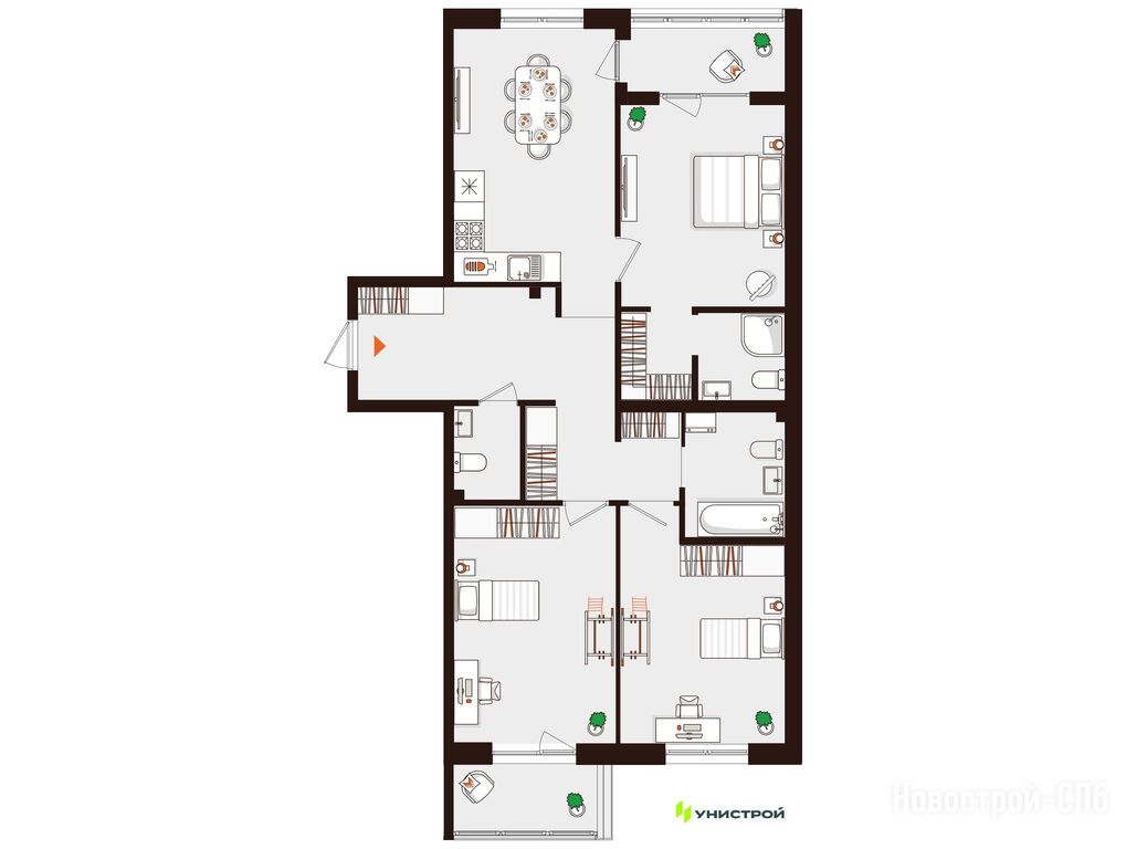 Еще застройщик предлагает комфортные условия, как в самом доме, так и за его пределами. В квартире продумано все до мелочей: современная отделка, уютные общественные пространства и отличная звукоизоляция. Внутренний двор тоже радует: есть места для отдыха, детские площадки и даже спортивные зоны.