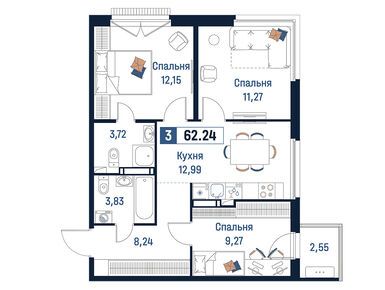Продается трехкомнатная квартира в новостройке ЖК «Максималист» по адресу Ленинградская область, Всеволожский район, Мурино, Мурино, ул. Романовская. Общая площадь квартиры - 62.24 кв. м. Тип проекта, по которому построен дом — Монолитно-кирпичный, компания-застройщик — Инвестиционно-строительная группа «МАВИС». Стоимость квартиры — 11 906 512 руб. Способы оплаты можно уточнить у продавца. Срок сдачи — 4 квартал 2027. Более подробная информация по телефону.