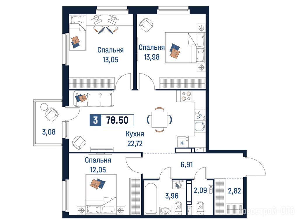 Продается трехкомнатная квартира в новостройке ЖК «Максималист» по адресу Ленинградская область, Всеволожский район, Мурино, Мурино, ул. Романовская. Общая площадь квартиры - 78.5 кв. м. Тип проекта, по которому построен дом — Монолитно-кирпичный, компания-застройщик — Инвестиционно-строительная группа «МАВИС». Стоимость квартиры — 14 577 450 руб. Способы оплаты можно уточнить у продавца. Срок сдачи — 4 квартал 2027. Более подробная информация по телефону.