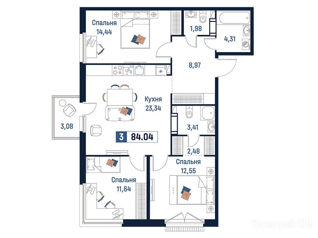 Продается трехкомнатная квартира в новостройке ЖК «Максималист» по адресу Ленинградская область, Всеволожский район, Мурино, Мурино, ул. Романовская. Общая площадь квартиры - 84.04 кв. м. Тип проекта, по которому построен дом — Монолитно-кирпичный, компания-застройщик — Инвестиционно-строительная группа «МАВИС». Стоимость квартиры — 15 933 984 руб. Способы оплаты можно уточнить у продавца. Срок сдачи — 4 квартал 2027. Более подробная информация по телефону.