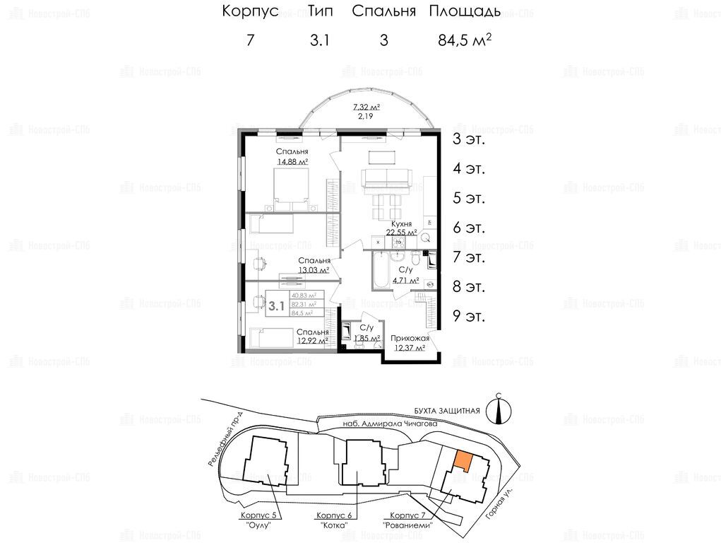 Продается трехкомнатная квартира в новостройке ЖК «Малая Финляндия» по адресу Ленинградская область, Выборгский район, Выборг, ул. Горная, корпус Рованиеми (М7). Общая площадь квартиры - 84.5 кв. м. Тип проекта, по которому построен дом — Монолит, компания-застройщик — КапСтрой. Стоимость квартиры — 17 200 000 руб. Способы оплаты можно уточнить у продавца. Более подробная информация по телефону.