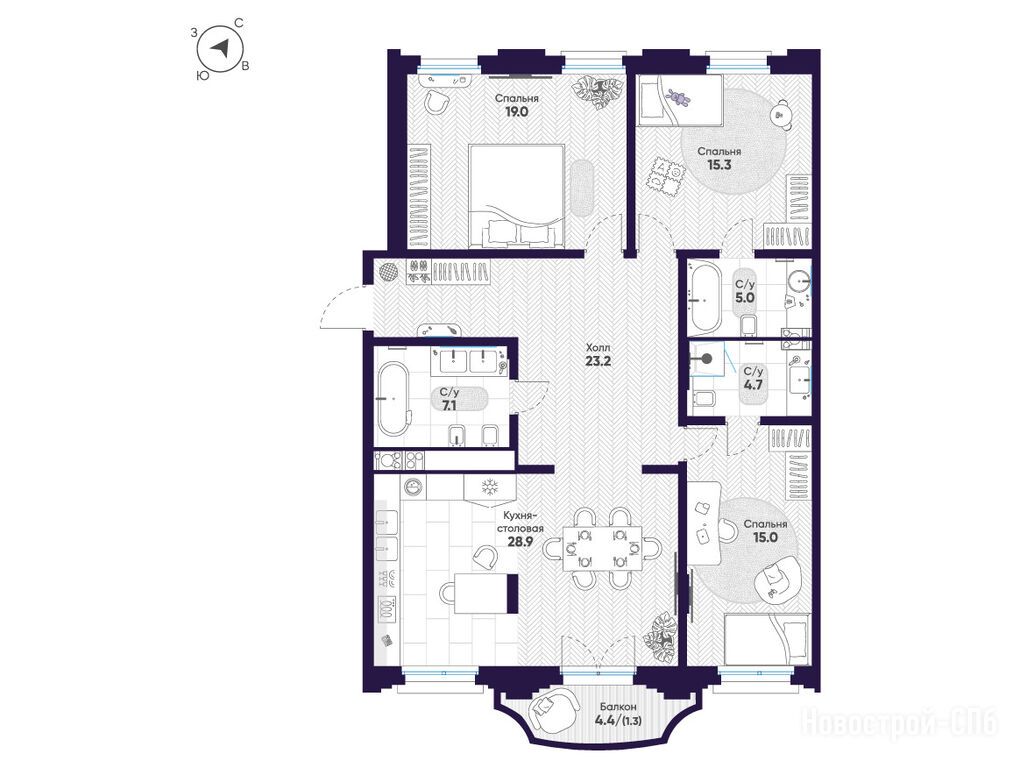 Продается трехкомнатная квартира в новостройке ЖК «Мариинка Делюкс» по адресу Санкт-Петербург, Адмиралтейский, Матисов переулок. Общая площадь квартиры - 119.5 кв. м. Тип проекта, по которому построен дом — Монолитно-кирпичный, компания-застройщик — Группа «Эталон». Стоимость квартиры — 122 263 000 руб. Способы оплаты можно уточнить у продавца. Срок сдачи — 4 квартал 2027. Более подробная информация по телефону.