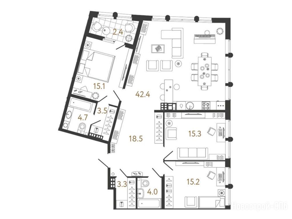 Продается трехкомнатная квартира в новостройке ЖК «Миръ» по адресу Санкт-Петербург, Центральный, Миргородская ул., д.1. Общая площадь квартиры - 121.6 кв. м. Тип проекта, по которому построен дом — Монолитно-каркасный, компания-застройщик — RBI. Стоимость квартиры — 70 539 567 руб. Способы оплаты можно уточнить у продавца. Более подробная информация по телефону.