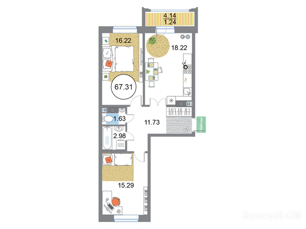3-комн. квартира 67,31 м2 21 678 862