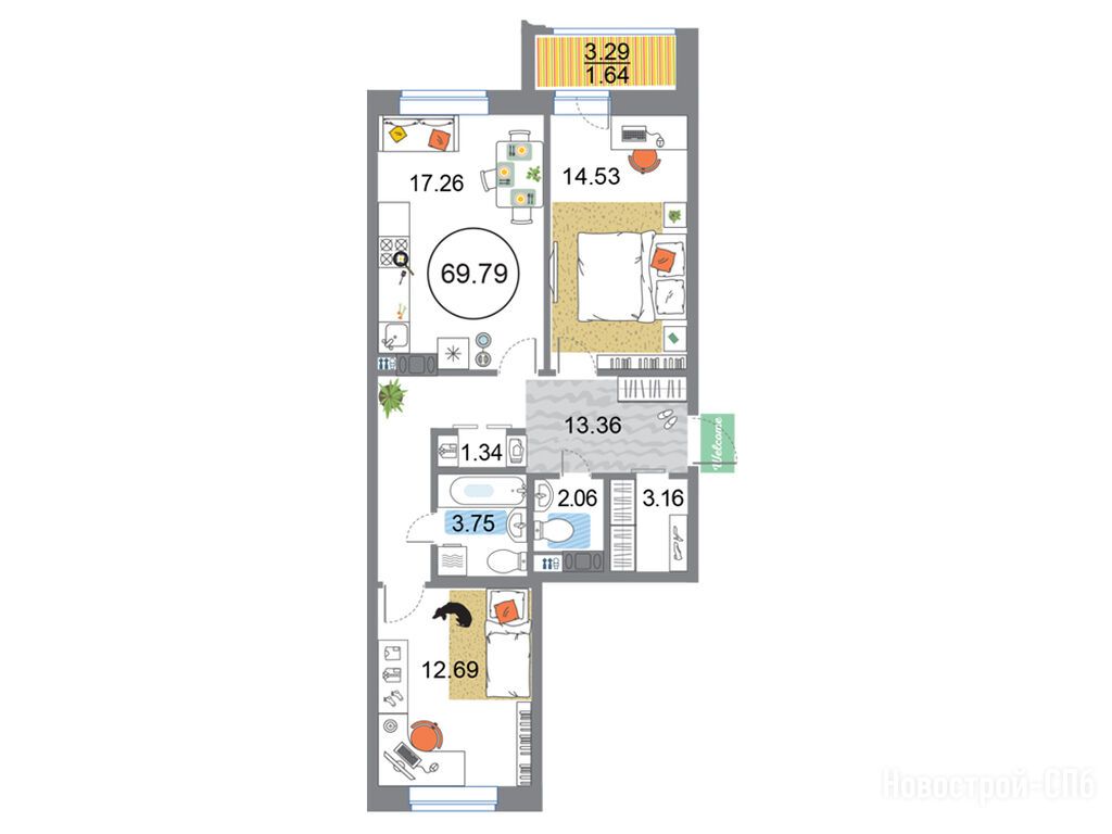 Продается трехкомнатная квартира в новостройке ЖК Modum (Модум) по адресу Санкт-Петербург, Приморский, пр-т, Авиаконструкторов, д. 54, корпус 3. Общая площадь квартиры - 69.79 кв. м. Тип проекта, по которому построен дом — Монолитно-кирпичный, компания-застройщик — Arsenal (Арсенал), ООО «Арсенал-Каменка». Стоимость квартиры — 19 732 983 руб. Способы оплаты можно уточнить у продавца. Более подробная информация по телефону.
