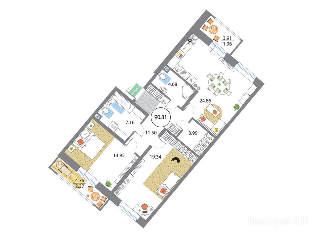 Продается трехкомнатная квартира в новостройке ЖК Modum (Модум) по адресу Санкт-Петербург, Приморский, пр-т Авиаконструкторов, д. 54, корпус 2. Общая площадь квартиры - 90.81 кв. м. Тип проекта, по которому построен дом — Монолитно-кирпичный, компания-застройщик — Arsenal (Арсенал), ООО «Арсенал-Каменка». Стоимость квартиры — 26 244 090 руб. Способы оплаты можно уточнить у продавца. Более подробная информация по телефону.