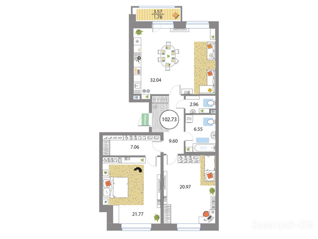 Продается трехкомнатная квартира в новостройке ЖК Modum (Модум) по адресу Санкт-Петербург, Приморский, пр-т Авиаконструкторов, д. 54, корпус 2. Общая площадь квартиры - 102.73 кв. м. Тип проекта, по которому построен дом — Монолитно-кирпичный, компания-застройщик — Arsenal (Арсенал), ООО «Арсенал-Каменка». Стоимость квартиры — 26 801 251 руб. Способы оплаты можно уточнить у продавца. Более подробная информация по телефону.