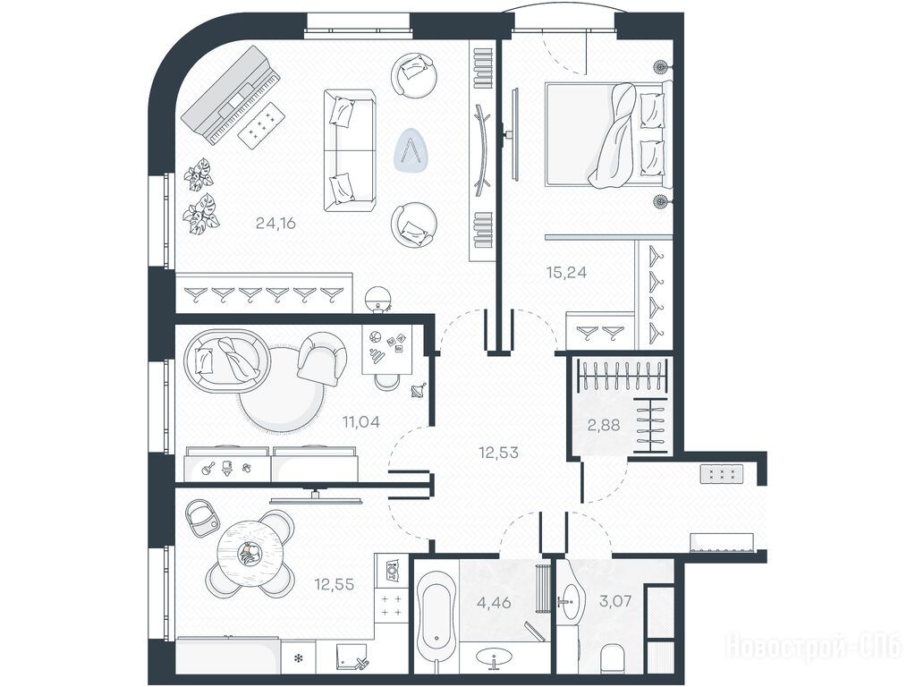 Планировки здесь просто находка! Я искал квартиру долго, но именно здесь нашел идеальную трешку с продуманным пространством. Никаких “мертвых” зон, всё очень функционально.