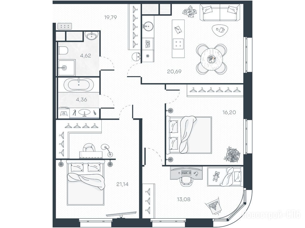 Планировки здесь просто находка! Я искал квартиру долго, но именно здесь нашел идеальную трешку с продуманным пространством. Никаких “мертвых” зон, всё очень функционально.