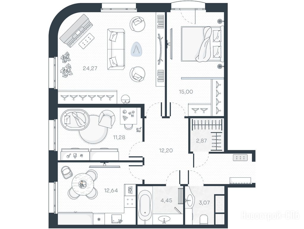 Планировки здесь просто находка! Я искал квартиру долго, но именно здесь нашел идеальную трешку с продуманным пространством. Никаких “мертвых” зон, всё очень функционально.