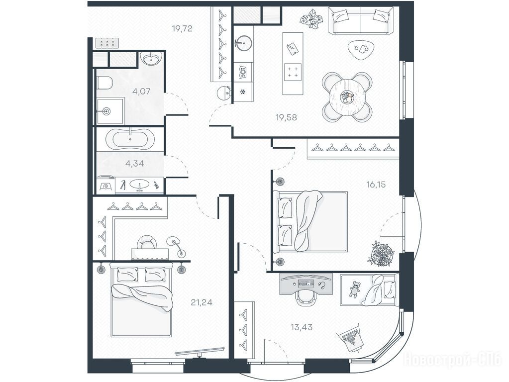 Планировки здесь просто находка! Я искал квартиру долго, но именно здесь нашел идеальную трешку с продуманным пространством. Никаких “мертвых” зон, всё очень функционально.