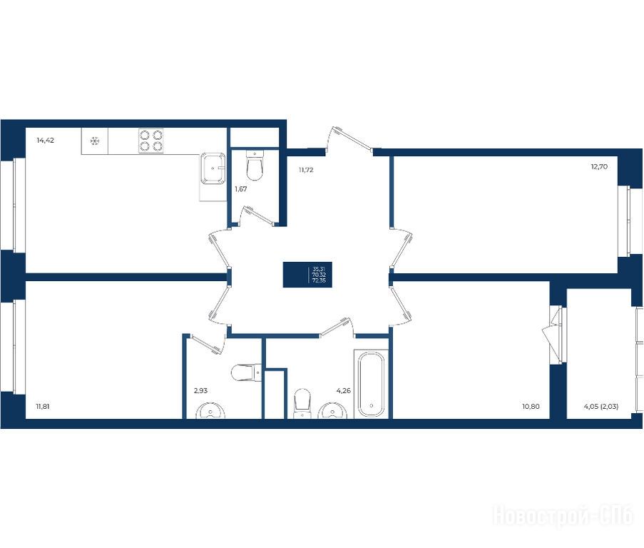 Продается трехкомнатная квартира в новостройке ЖК «Новатория» по адресу Ленинградская область, Ломоносовский район, Аннинское, Новоселье пос., ул. Центральная, ЖК «Новатория», корпус А. Общая площадь квартиры - 72.35 кв. м. Тип проекта, по которому построен дом — Монолитно-кирпичный, компания-застройщик — Новастрой, СЗ Новый дом. Стоимость квартиры — 11 937 750 руб. Способы оплаты можно уточнить у продавца. Срок сдачи — 3 квартал 2026. Более подробная информация по телефону.