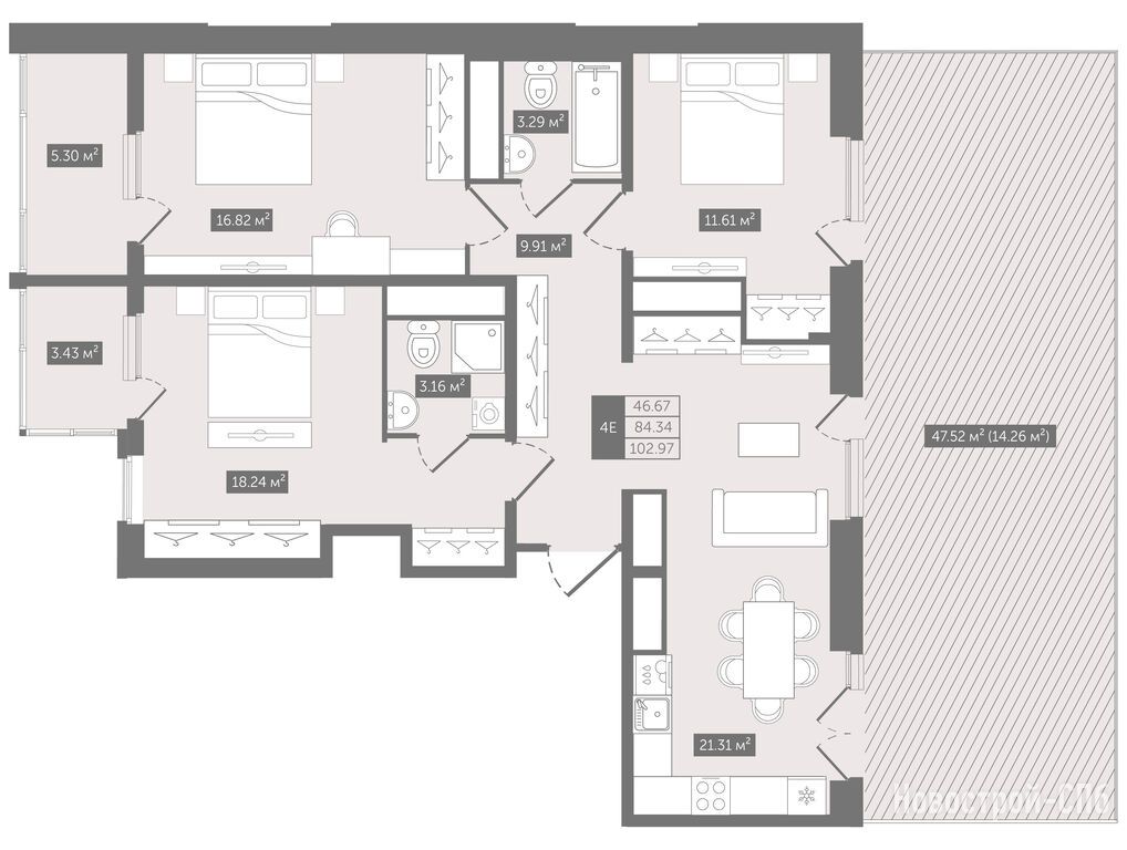 От этого проекта совсем нет впечатления, что будешь жить в безликом человейнике. Все очень уютно продумано. И дело не только в самой квартире, а во всем проекте: от благоустроенного двора до стильного каминного лобби. Единственное, что огорчает, это то, что ждать сдачи аж до 2027 года.