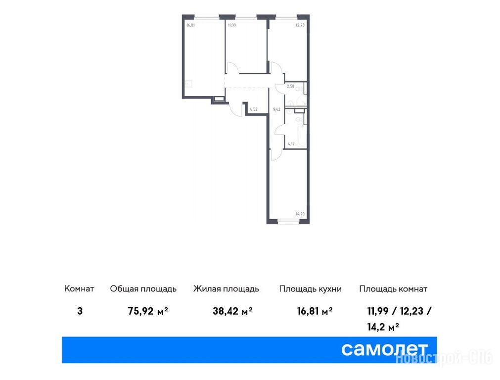 Продается трехкомнатная квартира в новостройке ЖК «Новые Лаврики» по адресу Ленинградская область, Всеволожский район, Мурино, Мурино, ЖК «Новые Лаврики». Общая площадь квартиры - 75.92 кв. м. Тип проекта, по которому построен дом — Монолитно-кирпичный, компания-застройщик — ООО СЗ САМОЛЕТ-ЛАВРИКИ, Самолет. Стоимость квартиры — 9 767 258 руб. Способы оплаты можно уточнить у продавца. Срок сдачи — 4 квартал 2026. Более подробная информация по телефону.