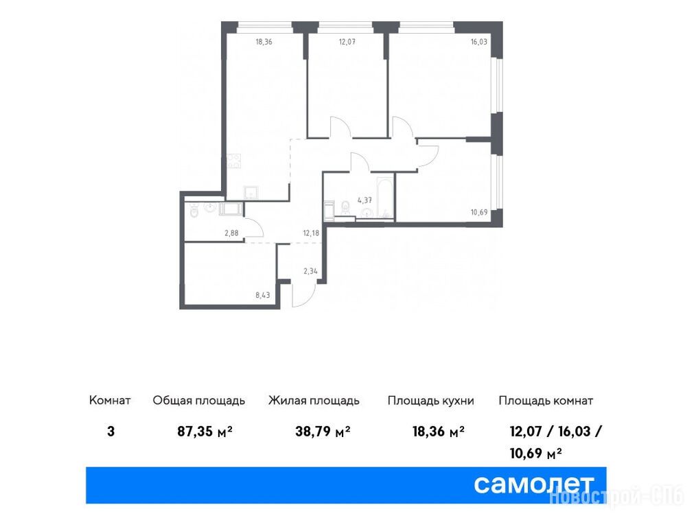 Продается трехкомнатная квартира в новостройке ЖК «Новое Колпино» по адресу Санкт-Петербург, Колпинский, Колпино, ЖК «Новое Колпино», корп. 35.1. Общая площадь квартиры - 87.35 кв. м. Тип проекта, по которому построен дом — Монолитно-кирпичный, компания-застройщик — ООО «СПб Реновация», Самолет. Стоимость квартиры — 16 783 866 руб. Способы оплаты можно уточнить у продавца. Срок сдачи — 1 квартал 2026. Более подробная информация по телефону.