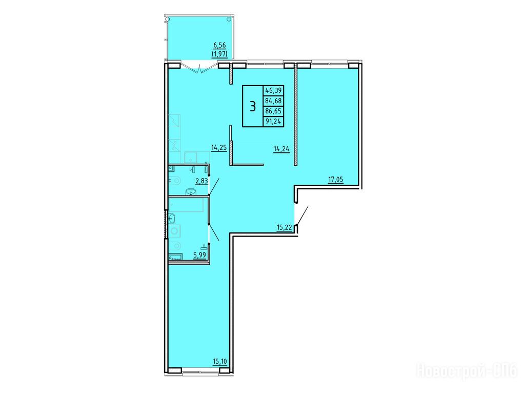 3-комн. квартира, 84.68 м