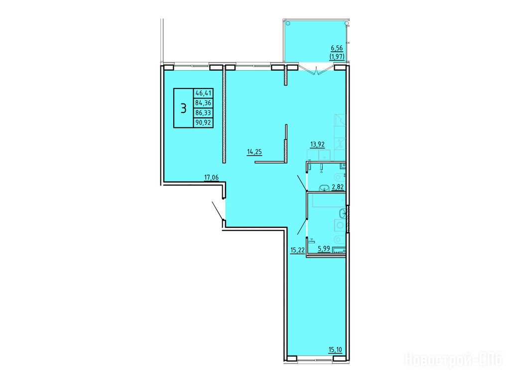 3-комн. квартира, 84.36 м