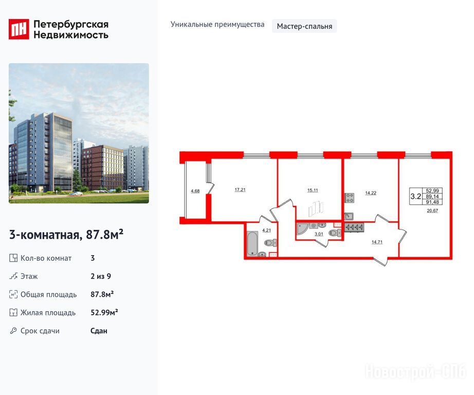 Продается трехкомнатная квартира в новостройке ЖК «Панорама Парк Сосновка» по адресу Санкт-Петербург, Выборгский, пр. Светлановский д.14, к.1. Общая площадь квартиры - 87.8 кв. м. Тип проекта, по которому построен дом — Монолитно-кирпичный, компания-застройщик — Setl Group (Сэтл Групп). Стоимость квартиры — 30 750 545 руб. Способы оплаты можно уточнить у продавца. Более подробная информация по телефону.