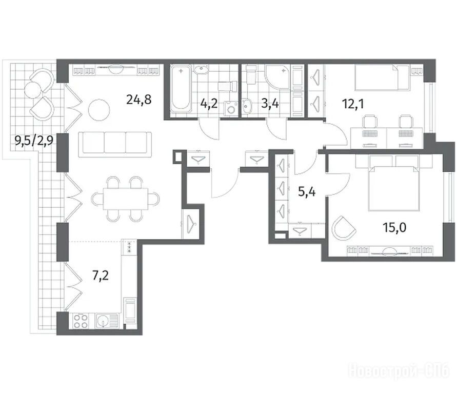 Продается трехкомнатная квартира в новостройке ЖК «Парусная 1» по адресу Санкт-Петербург, Василеостровский, ул. Шкиперский проток, 19А. Общая площадь квартиры - 81.9 кв. м. Тип проекта, по которому построен дом — Монолитно-каркасный, компания-застройщик — АО «СЗ «Строительный трест», ГК «ТРЕСТ». Стоимость квартиры — 35 013 000 руб. Способы оплаты можно уточнить у продавца. Срок сдачи — 4 квартал 2026. Более подробная информация по телефону.