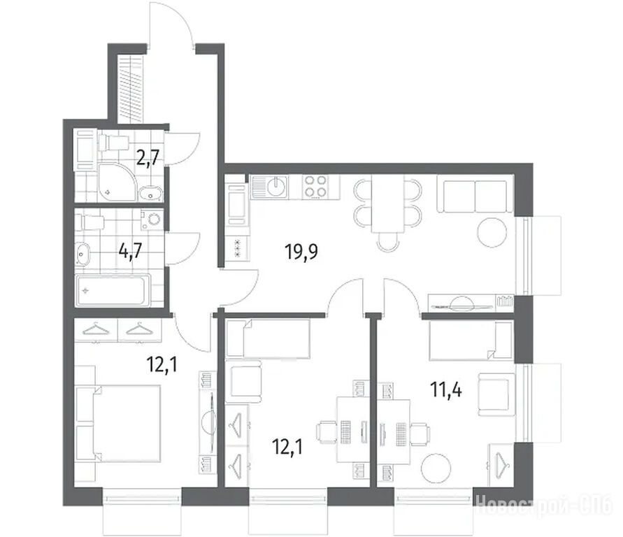 Продается трехкомнатная квартира в новостройке ЖК «Парусная 1» по адресу Санкт-Петербург, Василеостровский, ул. Шкиперский проток, 19А, корп.1.2. Общая площадь квартиры - 71.4 кв. м. Тип проекта, по которому построен дом — Монолитно-каркасный, компания-застройщик — АО «СЗ «Строительный трест», ГК «ТРЕСТ». Стоимость квартиры — 27 506 000 руб. Способы оплаты можно уточнить у продавца. Срок сдачи — 4 квартал 2026. Более подробная информация по телефону.