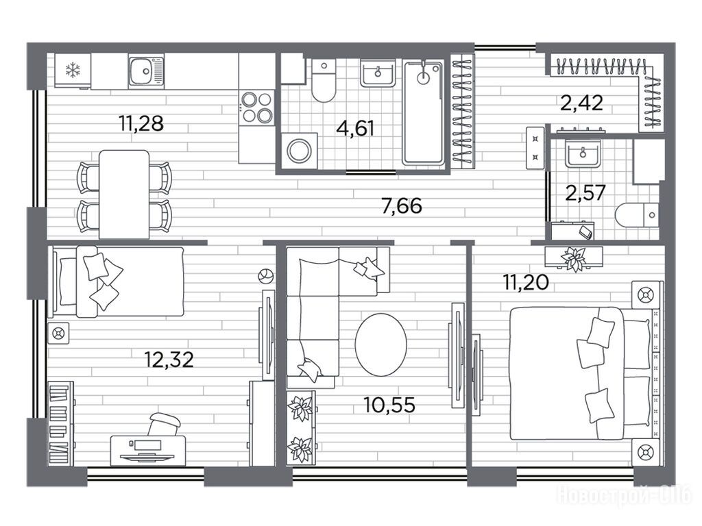 Продается трехкомнатная квартира в новостройке ЖК «Plus Пулковский» по адресу Санкт-Петербург, Московский, Пулковское шоссе, участок 24, корпус 4. Общая площадь квартиры - 62.61 кв. м. Тип проекта, по которому построен дом — Монолитно-кирпичный, компания-застройщик — ПСК. Стоимость квартиры — 14 950 641 руб. Способы оплаты можно уточнить у продавца. Срок сдачи — 2 квартал 2026. Более подробная информация по телефону.