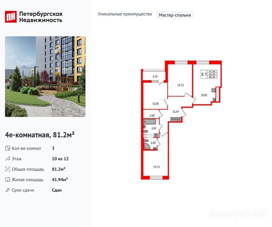Продается трехкомнатная квартира в новостройке ЖК «Прайм Приморский» по адресу Санкт-Петербург, Приморский, Парашютная улица, 77к1. Общая площадь квартиры - 81.2 кв. м. Тип проекта, по которому построен дом — Монолитно-кирпичный, компания-застройщик — Setl Group (Сэтл Групп). Стоимость квартиры — 24 300 562 руб. Способы оплаты можно уточнить у продавца. Более подробная информация по телефону.