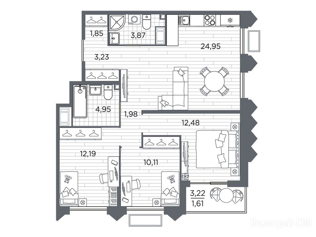 Продается трехкомнатная квартира в новостройке ЖК «Респект» по адресу Санкт-Петербург, Калининский, Полюстровский пр., 87. Общая площадь квартиры - 77.22 кв. м. Тип проекта, по которому построен дом — Монолитно-кирпичный, компания-застройщик — ПСК. Стоимость квартиры — 29 150 550 руб. Способы оплаты можно уточнить у продавца. Срок сдачи — 2 квартал 2027. Более подробная информация по телефону.