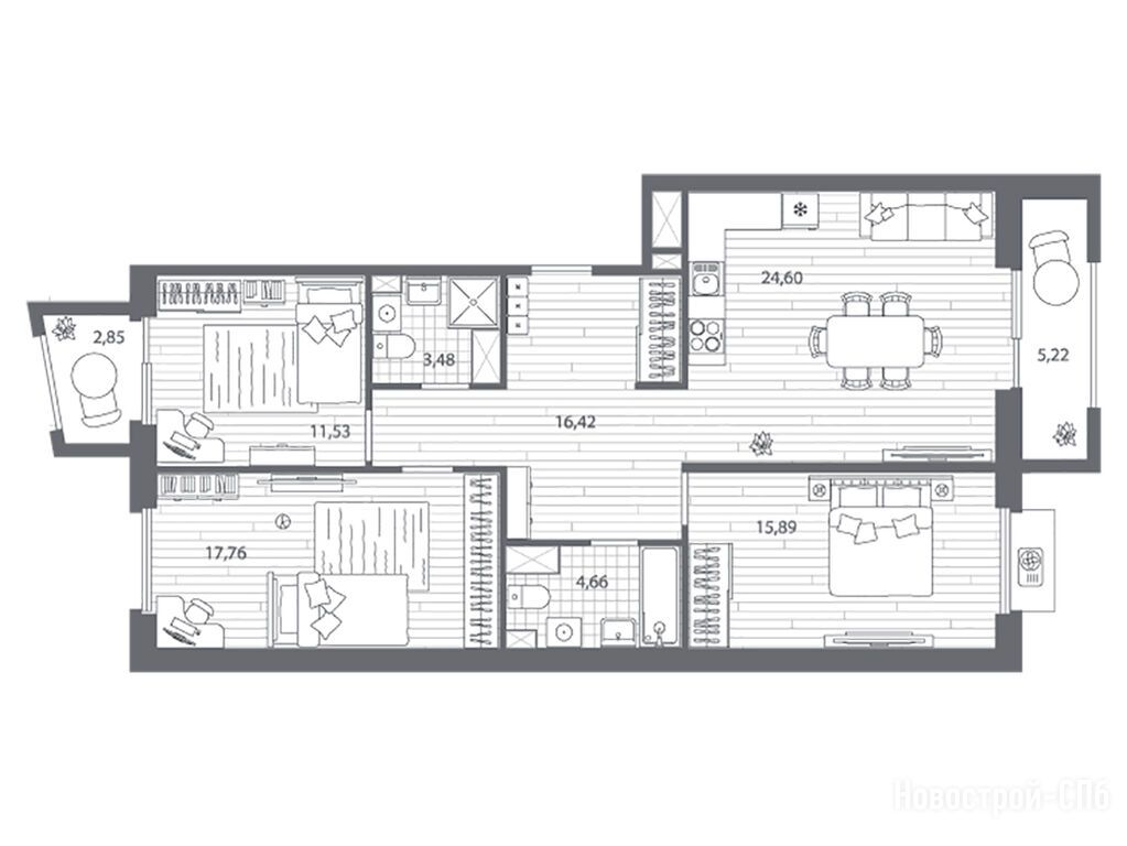 Продается трехкомнатная квартира в новостройке ЖК Respect (Респект) по адресу Санкт-Петербург, Калининский, Полюстровский пр., 87. Общая площадь квартиры - 96.77 кв. м. Тип проекта, по которому построен дом — Монолитно-кирпичный, компания-застройщик — ПСК. Стоимость квартиры — 31 353 644 руб. Способы оплаты можно уточнить у продавца. Срок сдачи — 1 квартал 2026. Более подробная информация по телефону.