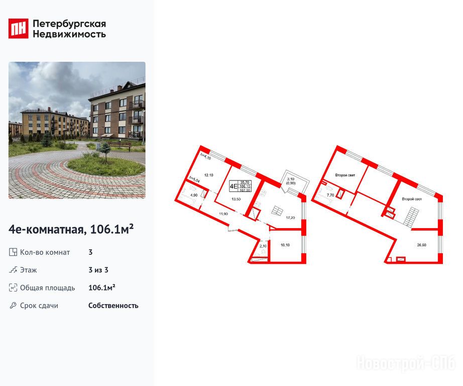Продается трехкомнатная квартира в новостройке ЖК «Шотландия» по адресу Ленинградская область, Всеволожский район, Агалатовское, Скотное дер., Вересковая ул., 5к2. Общая площадь квартиры - 106.1 кв. м. Тип проекта, по которому построен дом — Монолитно-кирпичный, компания-застройщик — Фонд защиты участников долевого строительства ЛО, ООО «Строительная компания «НАВИС». Стоимость квартиры — 9 877 910 руб. Способы оплаты можно уточнить у продавца. Более подробная информация по телефону.
