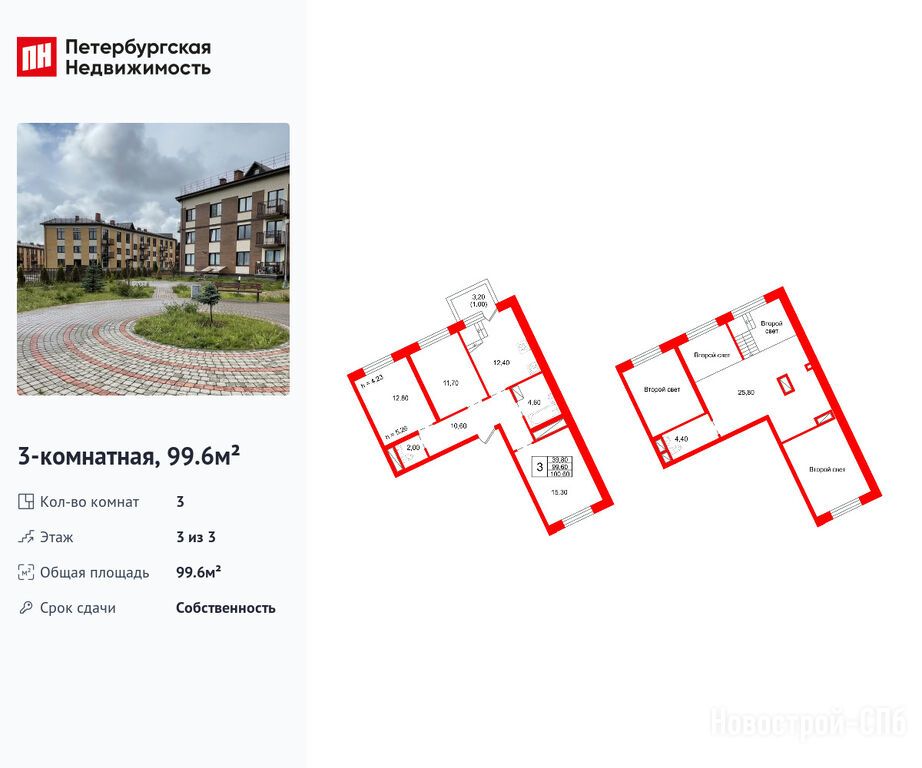 Продается трехкомнатная квартира в новостройке ЖК «Шотландия» по адресу Ленинградская область, Всеволожский район, Агалатовское, Скотное дер., ул. Вересковая, 4к1. Общая площадь квартиры - 99.6 кв. м. Тип проекта, по которому построен дом — Монолитно-кирпичный, компания-застройщик — Фонд защиты участников долевого строительства ЛО, ООО «Строительная компания «НАВИС». Стоимость квартиры — 9 342 480 руб. Способы оплаты можно уточнить у продавца. Более подробная информация по телефону.