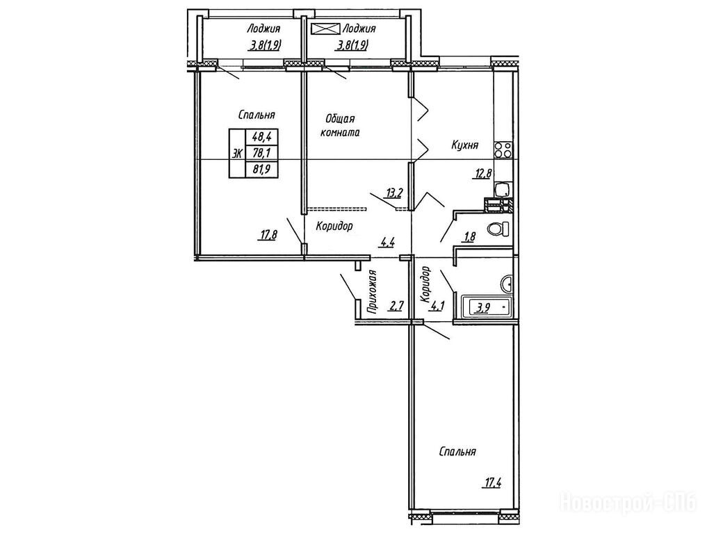 4-комн. квартира 81,40 м2 12 291 400