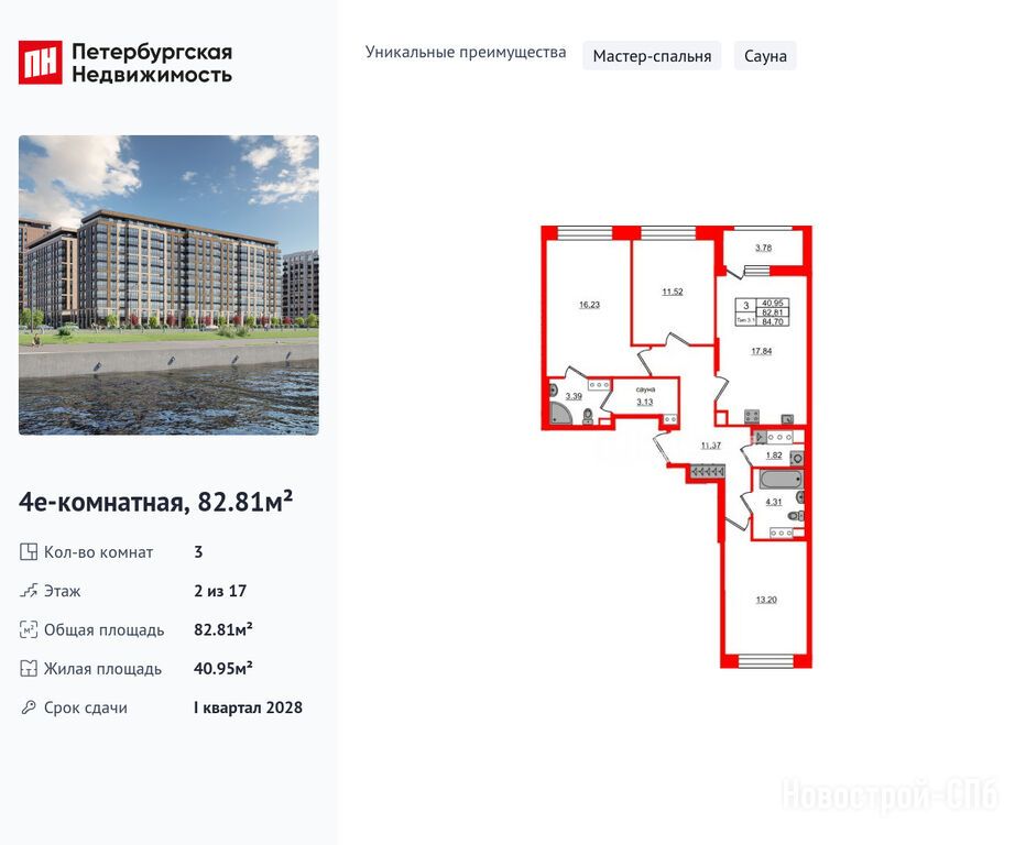 Продается трехкомнатная квартира в новостройке ЖК «Сэтл Ривьера» по адресу Санкт-Петербург, Невский, Октябрьская набережная (корп. 1.1). Общая площадь квартиры - 82.81 кв. м. Тип проекта, по которому построен дом — Монолитно-кирпичный, компания-застройщик — ООО «СЗ ПОТЕНЦИАЛ», Setl Group (Сэтл Групп). Стоимость квартиры — 24 800 684 руб. Способы оплаты можно уточнить у продавца. Срок сдачи — 1 квартал 2028. Более подробная информация по телефону.