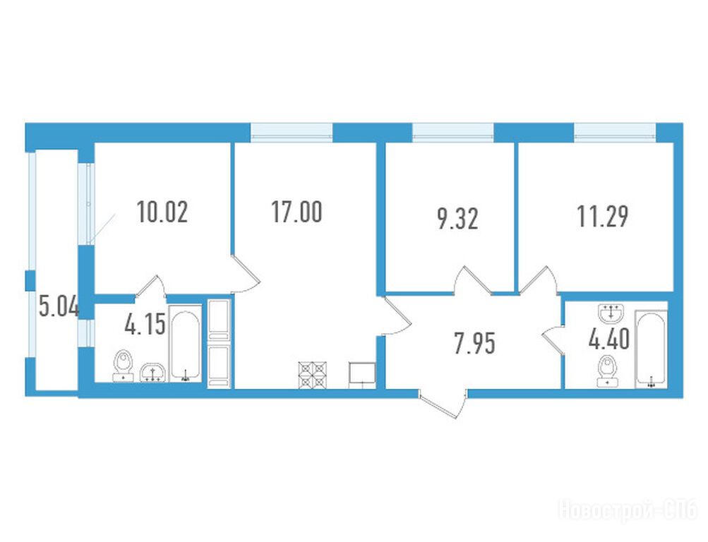 Продается трехкомнатная квартира в новостройке ЖК «Старлайт» по адресу Санкт-Петербург, Красногвардейский, Муринская дорога, 69. Общая площадь квартиры - 65.64 кв. м. Тип проекта, по которому построен дом — Монолитно-каркасный, компания-застройщик — Лидер Групп. Стоимость квартиры — 14 769 000 руб. Способы оплаты можно уточнить у продавца. Срок сдачи — 1 квартал 2027. Более подробная информация по телефону.