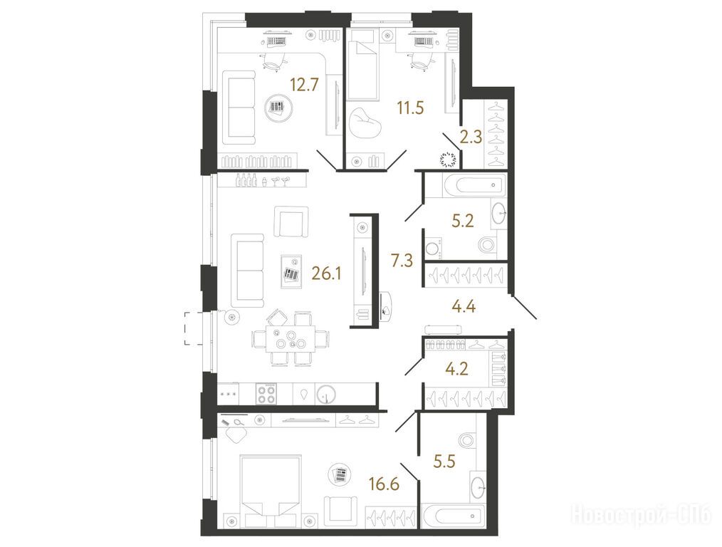 Продается трехкомнатная квартира в новостройке ЖК «Струны» по адресу Санкт-Петербург, Выборгский, ул. Шостаковича уч. 1. Общая площадь квартиры - 95.8 кв. м. Тип проекта, по которому построен дом — Монолитно-кирпичный, компания-застройщик — RBI. Стоимость квартиры — 24 734 880 руб. Способы оплаты можно уточнить у продавца. Срок сдачи — 4 квартал 2027. Более подробная информация по телефону.