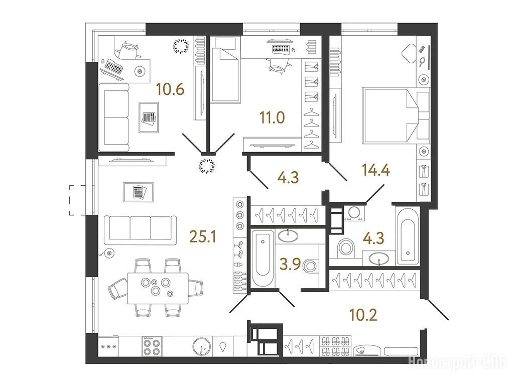Продается трехкомнатная квартира в новостройке ЖК «Струны» по адресу Санкт-Петербург, Выборгский, ул. Шостаковича уч. 1 корпус 4. Общая площадь квартиры - 83.8 кв. м. Тип проекта, по которому построен дом — Монолитно-кирпичный, компания-застройщик — RBI. Стоимость квартиры — 27 531 694 руб. Способы оплаты можно уточнить у продавца. Срок сдачи — 4 квартал 2026. Более подробная информация по телефону.