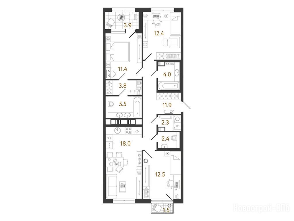 3-комн. квартира, 84.20 м2, 5 этаж