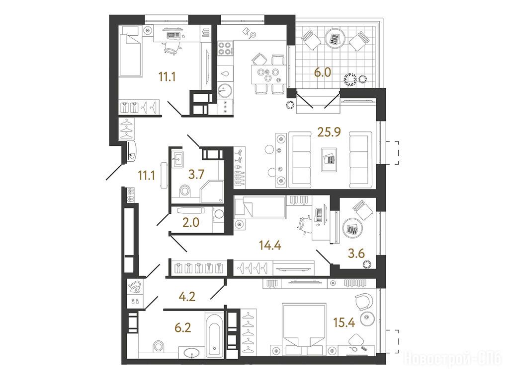 Продается трехкомнатная квартира в новостройке ЖК «Струны» по адресу Санкт-Петербург, Выборгский, ул. Шостаковича уч. 1 корпус 4. Общая площадь квартиры - 94 кв. м. Тип проекта, по которому построен дом — Монолитно-кирпичный, компания-застройщик — RBI. Стоимость квартиры — 35 166 359 руб. Способы оплаты можно уточнить у продавца. Срок сдачи — 4 квартал 2026. Более подробная информация по телефону.