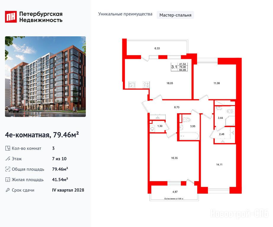 Продается трехкомнатная квартира в новостройке ЖК «Титул в Московском» по адресу Санкт-Петербург, Московский, ул. Кубинская, ЖК «Титул в Московском», корпус 2. Общая площадь квартиры - 79.46 кв. м. Тип проекта, по которому построен дом — Монолитно-кирпичный, компания-застройщик — Setl Group (Сэтл Групп), ООО «Новый элемент». Стоимость квартиры — 26 200 505 руб. Способы оплаты можно уточнить у продавца. Срок сдачи — 4 квартал 2028. Более подробная информация по телефону.