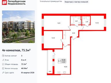 Продается трехкомнатная квартира в новостройке ЖК «Универ Сити» по адресу Санкт-Петербург, Пушкинский, Пушкин, Колпинское шоссе. Общая площадь квартиры - 76.4 кв. м. Тип проекта, по которому построен дом — Монолит, компания-застройщик — Setl Group (Сэтл Групп). Стоимость квартиры — 17 000 772 руб. Способы оплаты можно уточнить у продавца. Срок сдачи — 4 квартал 2027. Более подробная информация по телефону.