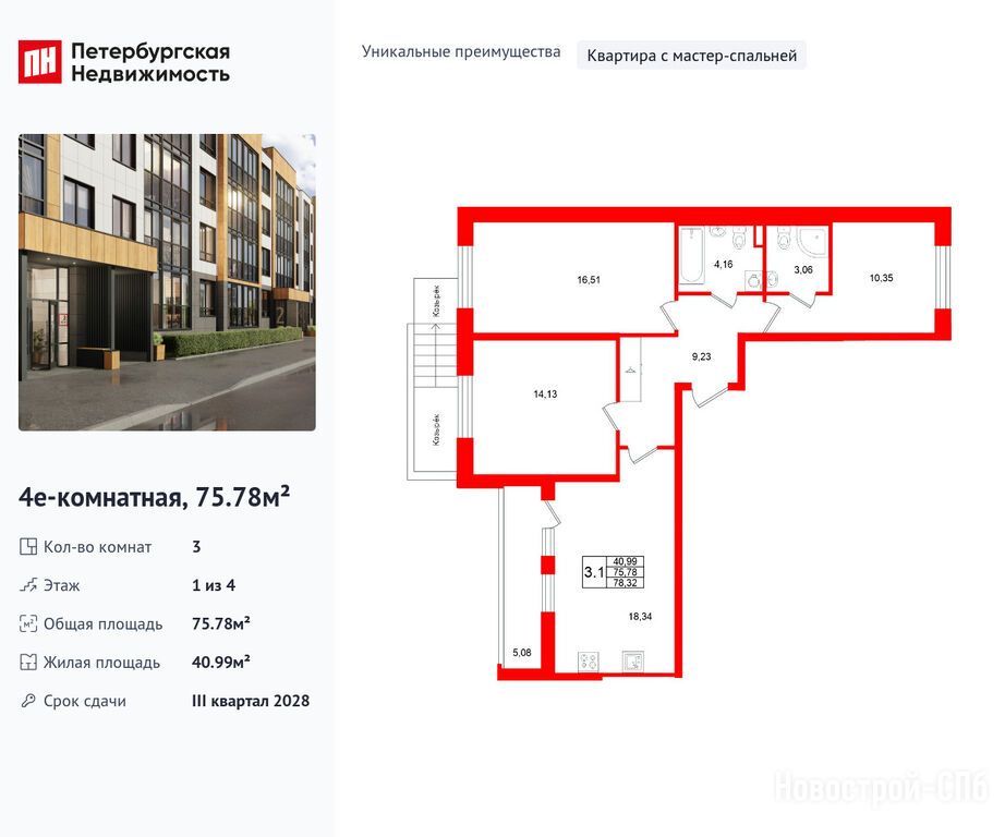 Продается трехкомнатная квартира в новостройке ЖК «Универ Сити» по адресу Санкт-Петербург, Пушкинский, Пушкин, Колпинское шоссе. Общая площадь квартиры - 75.78 кв. м. Тип проекта, по которому построен дом — Монолит, компания-застройщик — Setl Group (Сэтл Групп). Стоимость квартиры — 16 900 039 руб. Способы оплаты можно уточнить у продавца. Срок сдачи — 3 квартал 2028. Более подробная информация по телефону.