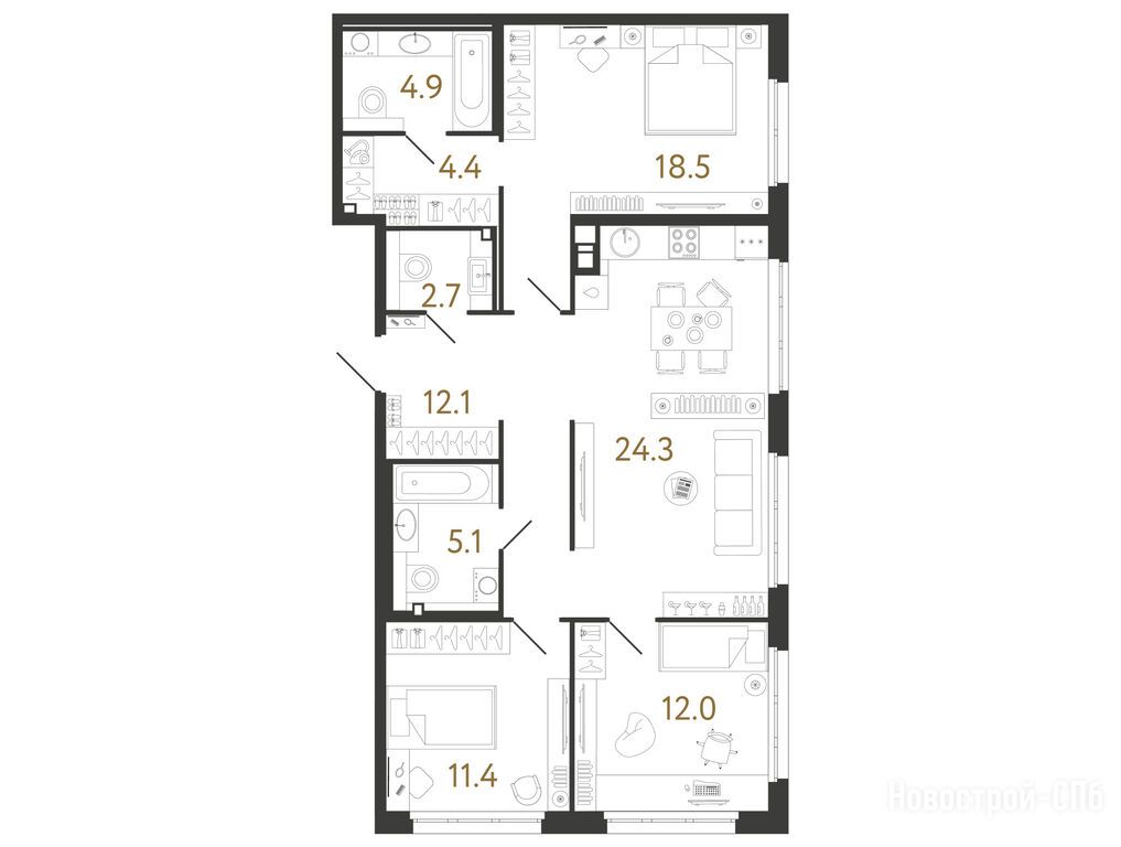 Продается трехкомнатная квартира в новостройке ЖК «Визионер» по адресу Санкт-Петербург, Петроградский, Средняя Колтовская, д. 9-11. Общая площадь квартиры - 95.4 кв. м. , компания-застройщик — RBI. Стоимость квартиры — 52 059 293 руб. Способы оплаты можно уточнить у продавца. Срок сдачи — 4 квартал 2028. Более подробная информация по телефону.