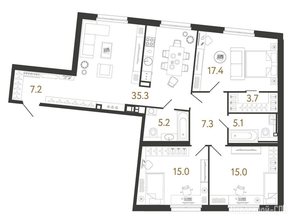 Продается трехкомнатная квартира в новостройке ЖК «Визионер» по адресу Санкт-Петербург, Петроградский, Средняя Колтовская, д. 9-11. Общая площадь квартиры - 111.2 кв. м. , компания-застройщик — RBI. Стоимость квартиры — 53 622 708 руб. Способы оплаты можно уточнить у продавца. Срок сдачи — 4 квартал 2026. Более подробная информация по телефону.