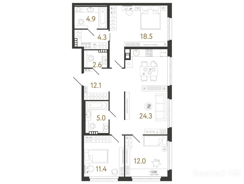 Продается трехкомнатная квартира в новостройке ЖК «Визионер» по адресу Санкт-Петербург, Петроградский, Средняя Колтовская, д. 9-11. Общая площадь квартиры - 95.1 кв. м. , компания-застройщик — RBI. Стоимость квартиры — 67 209 048 руб. Способы оплаты можно уточнить у продавца. Срок сдачи — 4 квартал 2028. Более подробная информация по телефону.