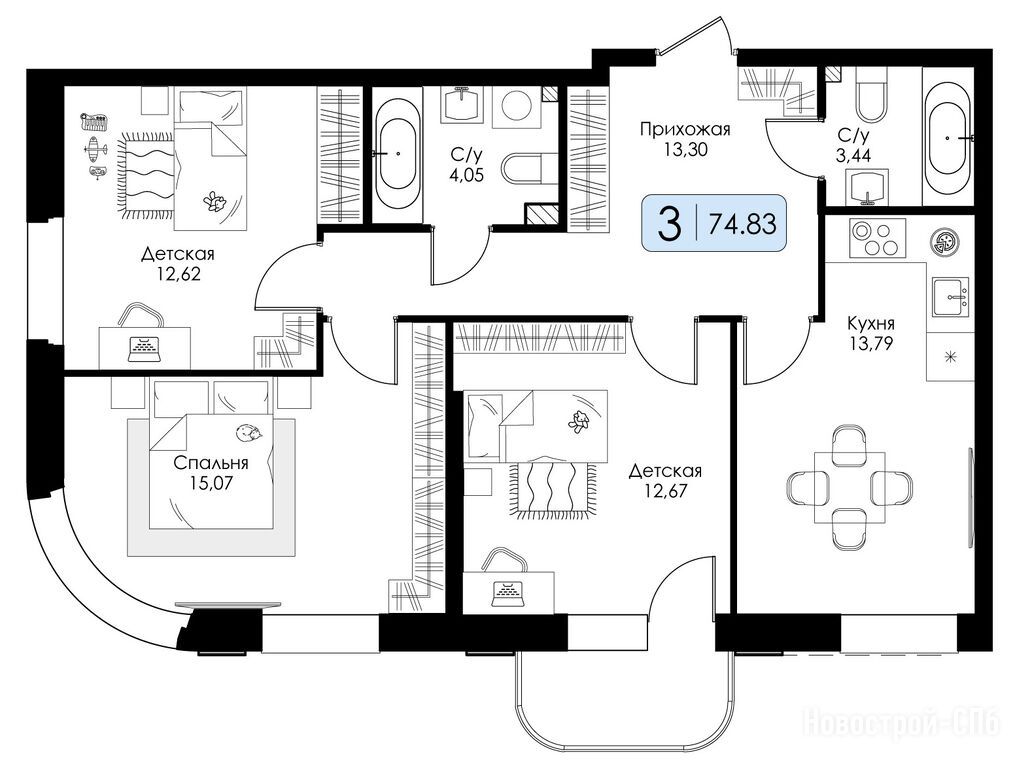 Продается трехкомнатная квартира в новостройке ЖК «Всевгород» по адресу Ленинградская область, Всеволожский район, поселок Романовка, ЖК «Всевгород», корпус 1.1. Общая площадь квартиры - 74.83 кв. м. Тип проекта, по которому построен дом — Монолитно-кирпичный, компания-застройщик — Группа компаний «Консоль», ООО СЗ РОМАНОВКА 1. Стоимость квартиры — 12 470 420 руб. Способы оплаты можно уточнить у продавца. Срок сдачи — 4 квартал 2027. Более подробная информация по телефону.