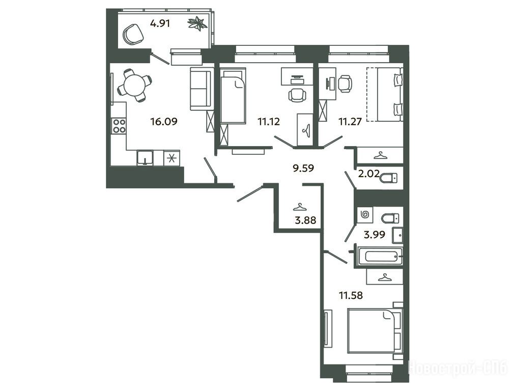 Продается трехкомнатная квартира в новостройке ЖК «Загляденье» по адресу Ленинградская область, Ломоносовский район, Аннинское, Новоселье пос., Аннинская улица, 4. Общая площадь квартиры - 70.71 кв. м. Тип проекта, по которому построен дом — Монолитно-кирпичный, компания-застройщик — Л1, ООО «СЗ СТ-3». Стоимость квартиры — 11 330 546 руб. Способы оплаты можно уточнить у продавца. Срок сдачи — 3 квартал 2029. Более подробная информация по телефону.