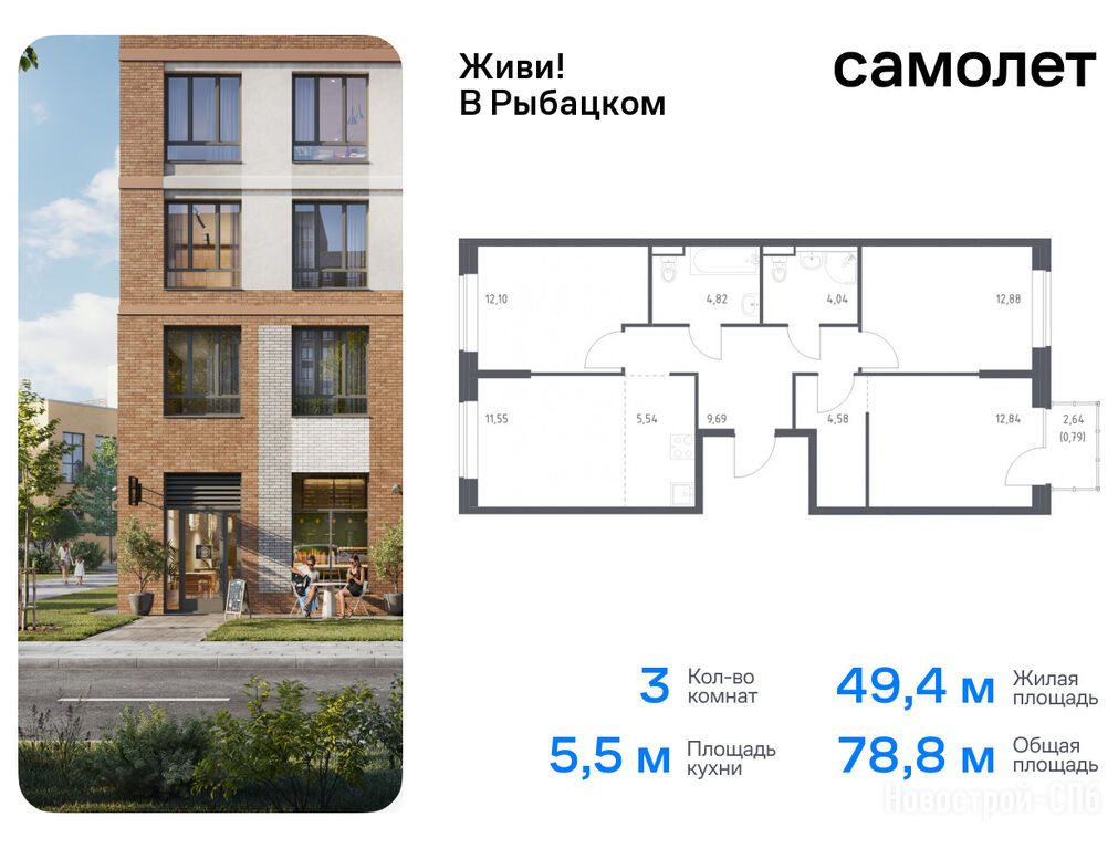 Продается трехкомнатная квартира в новостройке ЖК «Живи! В Рыбацком» по адресу Санкт-Петербург, Невский, Советский пр., д. 39, 41, 43. Общая площадь квартиры - 78.83 кв. м. Тип проекта, по которому построен дом — Монолитно-кирпичный, компания-застройщик — ООО «СПб Реновация», Самолет. Стоимость квартиры — 21 138 659 руб. Способы оплаты можно уточнить у продавца. Срок сдачи — 4 квартал 2025. Более подробная информация по телефону.